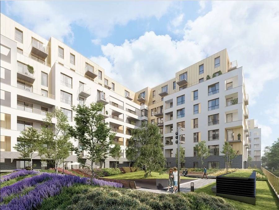 **Układ 2-pokojowy (41,91 m2) – salon z kuchnią w aneksie, sypialnia, łazienka i przedpokój. Dodatkowo ok. 3,5-metrowy balkon. Ekspozycja wschodnia. Umiejscowione jest w wewnętrznej części osiedla, wyciszonej, osłonięte od głównych ulic i ruchu miejskiego, z widokiem na zieloną przestrzeń między budynkami. Wysokie 5 piętro zapewnia ciszę oraz ładne widoki.