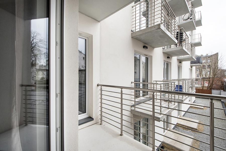 Lokal o ekspozycji wschodniej, usytuowany od strony podwórka, położony jest na 1 piętrze i składa się z salonu z aneksem kuchennym (31 m2), sypialni (11 m2) oraz łazienki (4 m2). Dodatkową powierzchnię stanowi balkon (4,3 m2), na który można wejść zarówno z salonu, jak i z sypialni. Atutem są także duże, balkonowe okna.