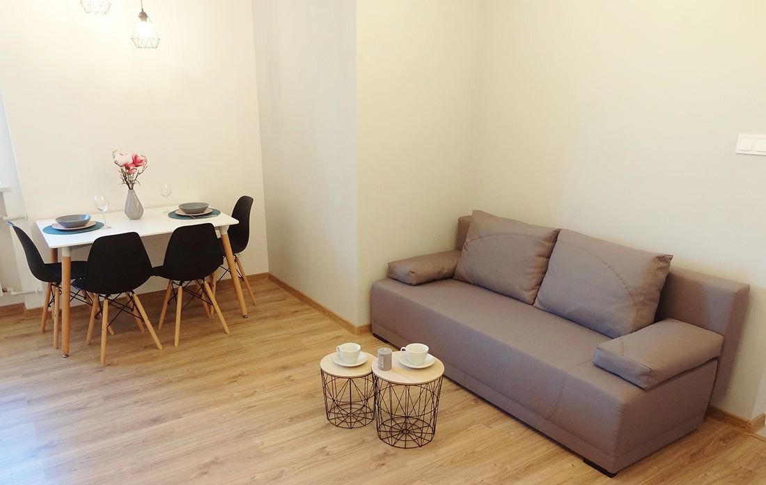 Mieszkanie położone jest w ścisłym centrum Mińska Mazowieckiego przy ulicy Warszawskiej, na I. piętrze w bloku z cegły z lat 70-tych o powierzchni 52 m 2 . Składa się z trzech pokoi: dużego salonu (loftu) z aneksem kuchennym, sypialni oraz pokoju z balkonem. Do mieszkania przynależą także aż 2 piwnice.
