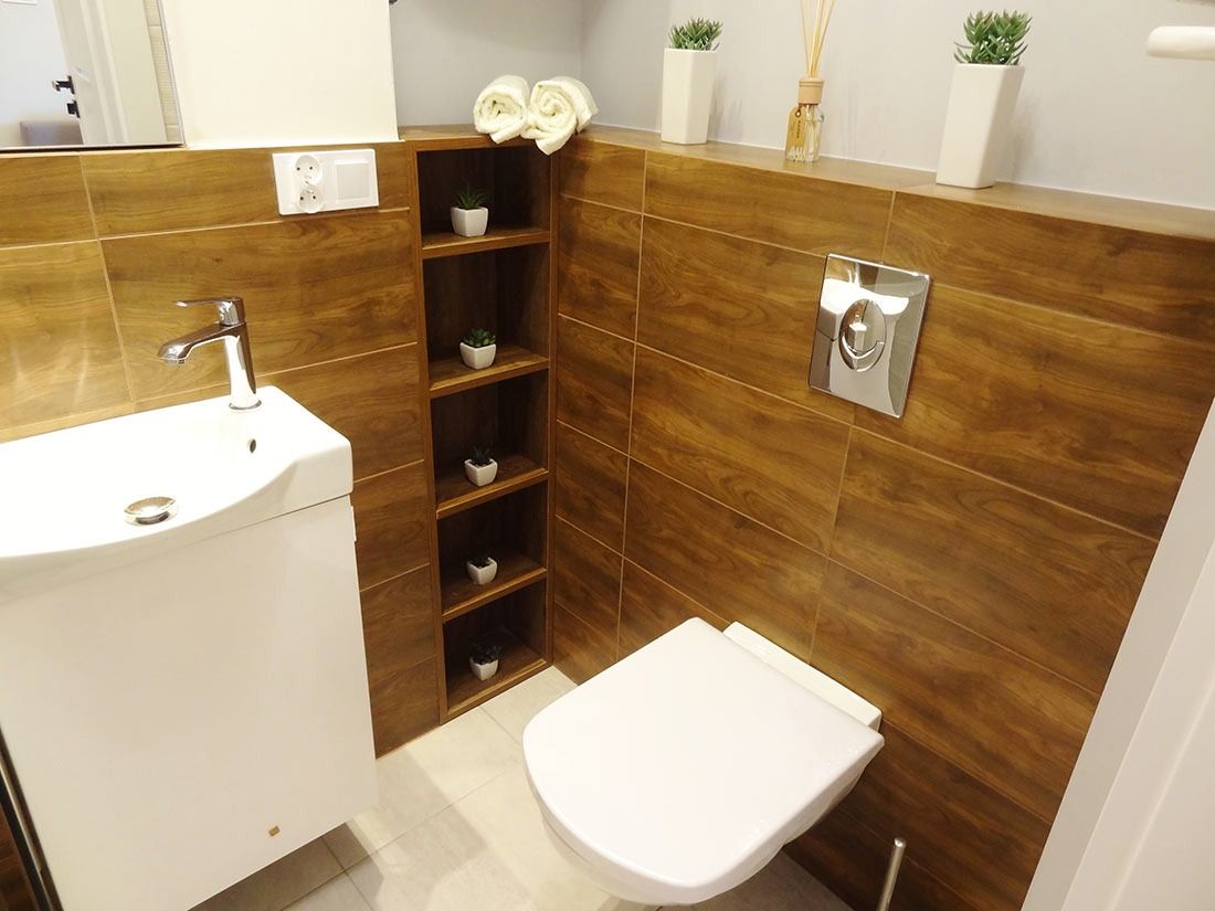 - w łazience wysokiej klasy wykończenie Grohe i armatura Omnires.