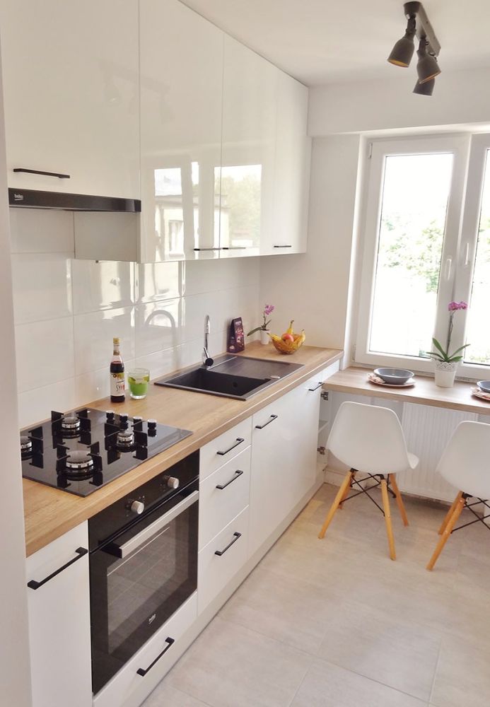- nowa kuchnia na zamówienie, fronty lakierowane na wysoki połysk z cichym domykiem i blatem DĄB CANYON 4cm