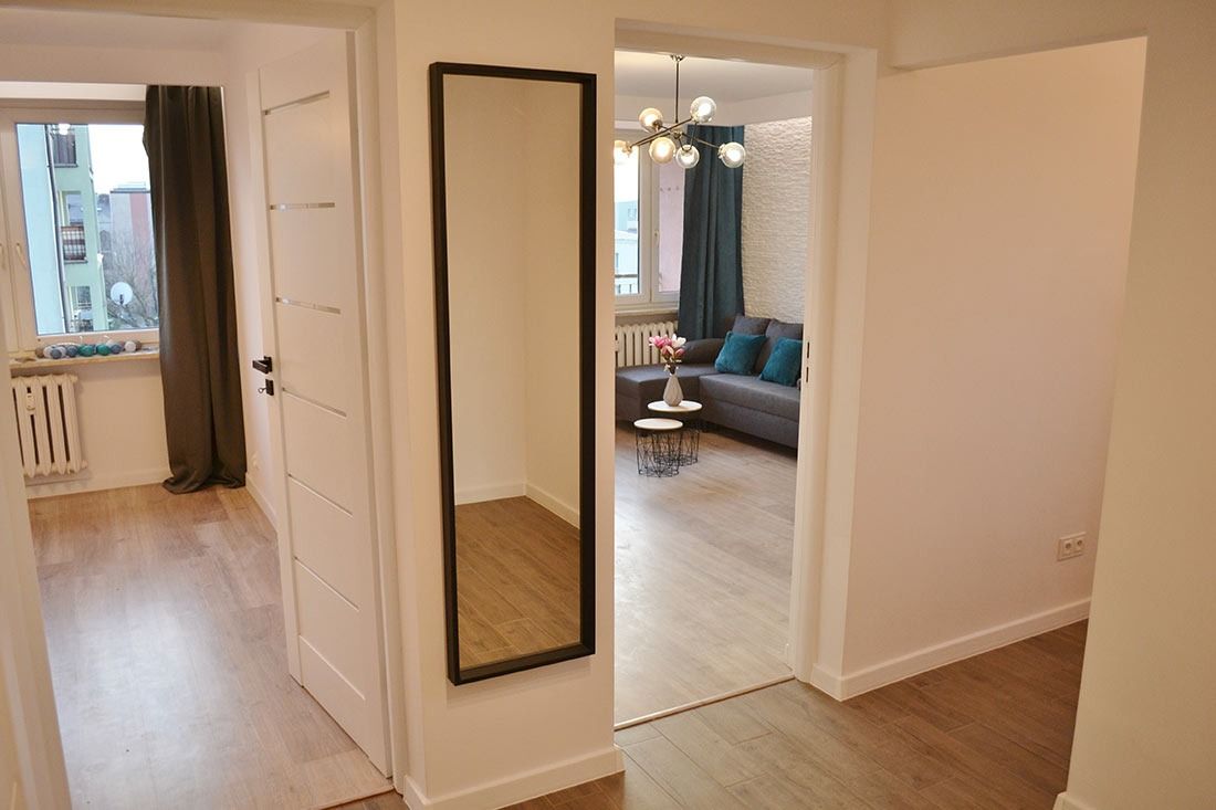 Piękne 2-pokojowe mieszkanie po generalnym remoncie o powierzchni 44,16m2 znajduje się w bloku z lat 90-tych w Mińsku Mazowieckim przy ulicy 1 PLM „Warszawa”.