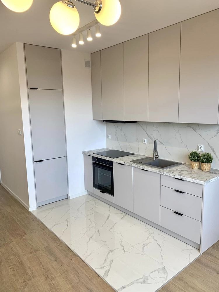 Mieszkanie zlokalizowane jest na 4 piętrze i pochodzi z zasobów nowo powstającego, eleganckiego osiedla realizowanego przez dewelopera SP Invest. Lokal został wykończony w wysokim standardzie. Ułożono gres oraz glazurę, wykonano szpachlowanie i gipsowania oraz zabudowy GK. W kuchni, łazience i korytarzu wykonano meble na wymiar, w których znajduje się pełen zestaw sprzętu AGD. W całym mieszkaniu oświetlenie w technologii LED. Na ścianie znajduje się sztukateria.