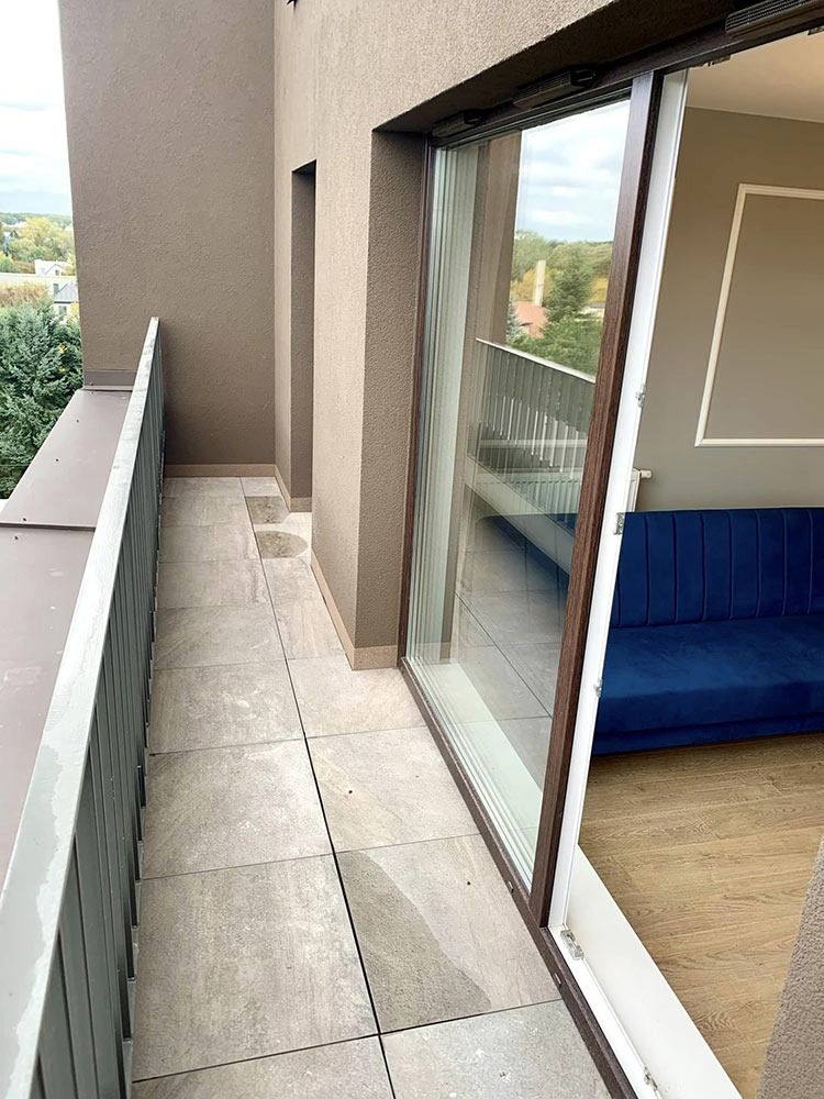 Układ 3-pokojowy (53,25m2) – salon z aneksem kuchennym, 2 pokoje, łazienka i przedpokój. Dodatkowo balkon o powierzchni 5,98 m2. Ekspozycja północ-południe. Umiejscowione jest dwustronnie, częściowo od strony wewnętrznej, osłoniętej od głównych ulic i ruchu miejskiego, z widokiem na zielone patio oraz częściowo od ulicy Zamkniętej.