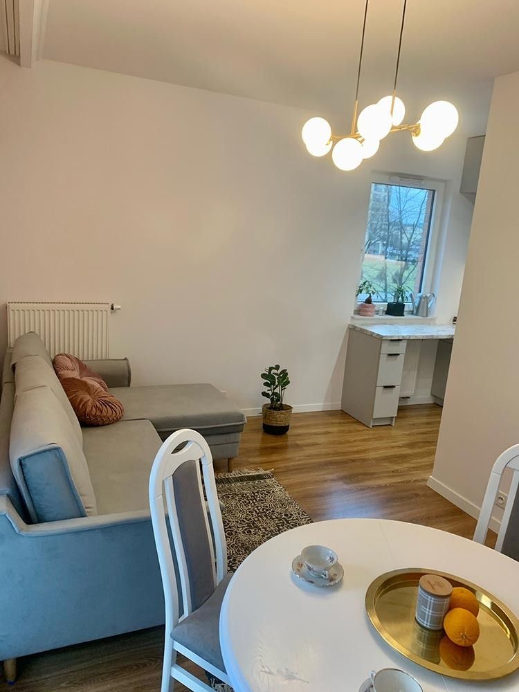 Mieszkanie jest położone na 1 piętrze i składa się z salonu z aneksem kuchennym, dwóch osobnych pokoi, łazienki, WC oraz przedpokoju.