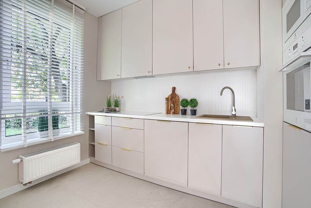 Przestronny salon połączony z kuchnią i jadalnią to serce tego mieszkania. Kuchnia w zabudowie, w pełni wyposażona, z dużym oknem zapewniającym naturalne światło. Salon z wyjściem na taras i piękny ogród stanowi idealne miejsce do wypoczynku i spędzania czasu z rodziną.